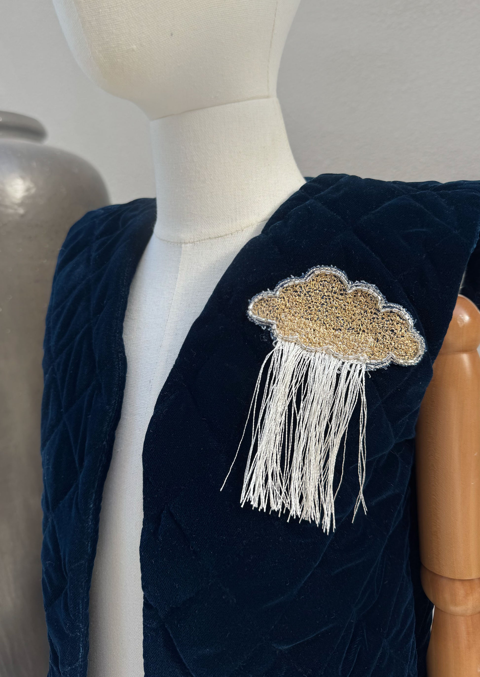 Velvet quilted vest for boys, featuring a whimsical cloud embellishment on the front. Designed for Ramadan, this piece can be worn layered over an outfit or styled atop a traditional thobe. Soft, comfortable, and elegant, it adds a special festive touch to little ones’ looks.
